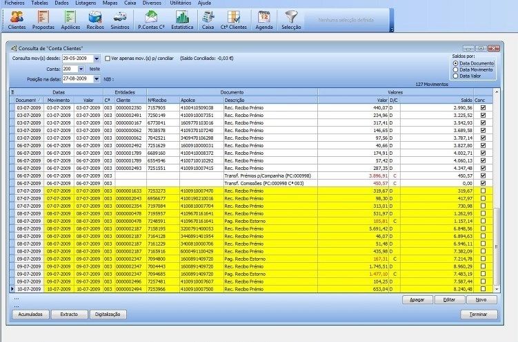 - Controlo de movimentos financeiro de caixa. Controlo de “conta clientes”;